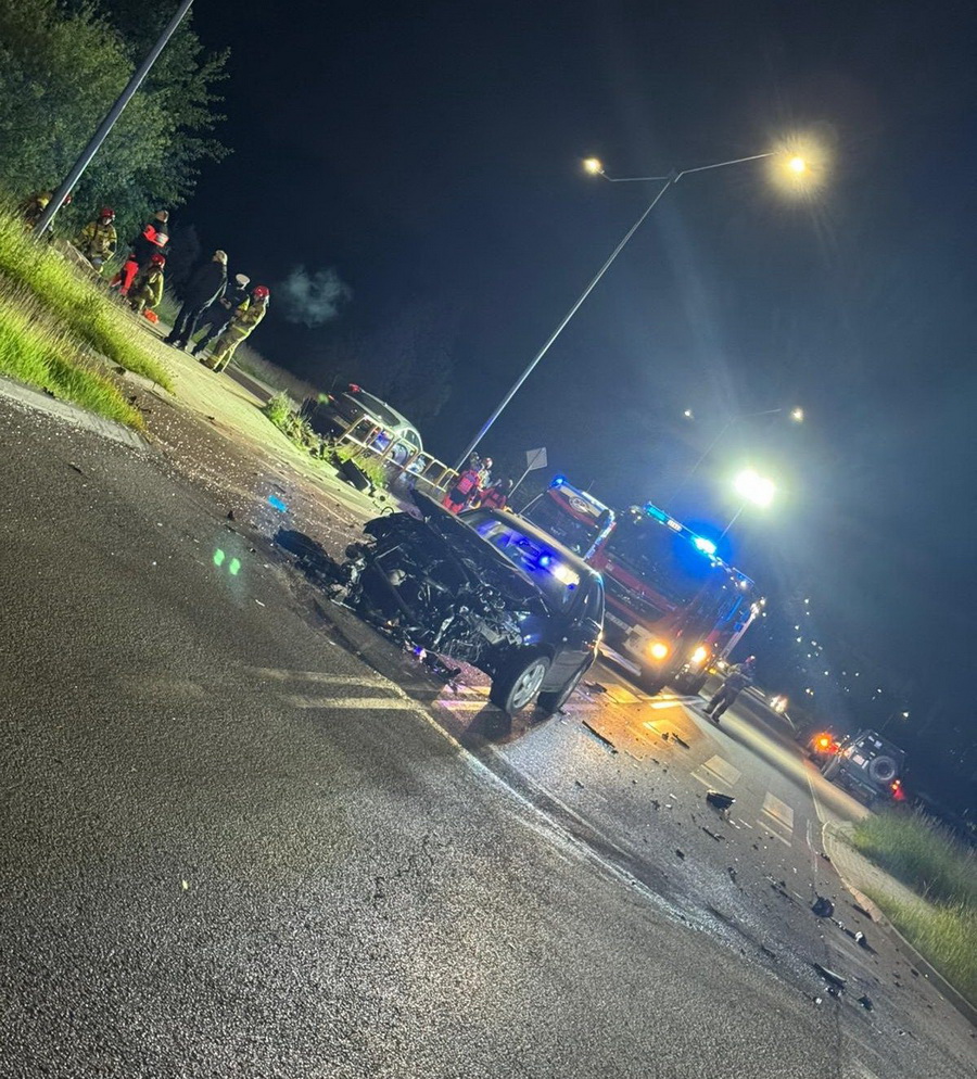 Pierwszym z aut kierował 20-latek, który nie ustąpił pierwszeństwa jadącemu w dół al. Jana Pawła II. Doszło wtedy do zdarzenia pojazdów
