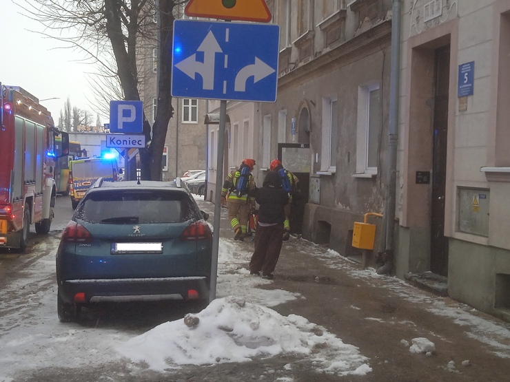 Zadymienie na klatce schodowej kamienicy przy ul. Mickiewicza. Na miejscu interweniowała straż pożarna.