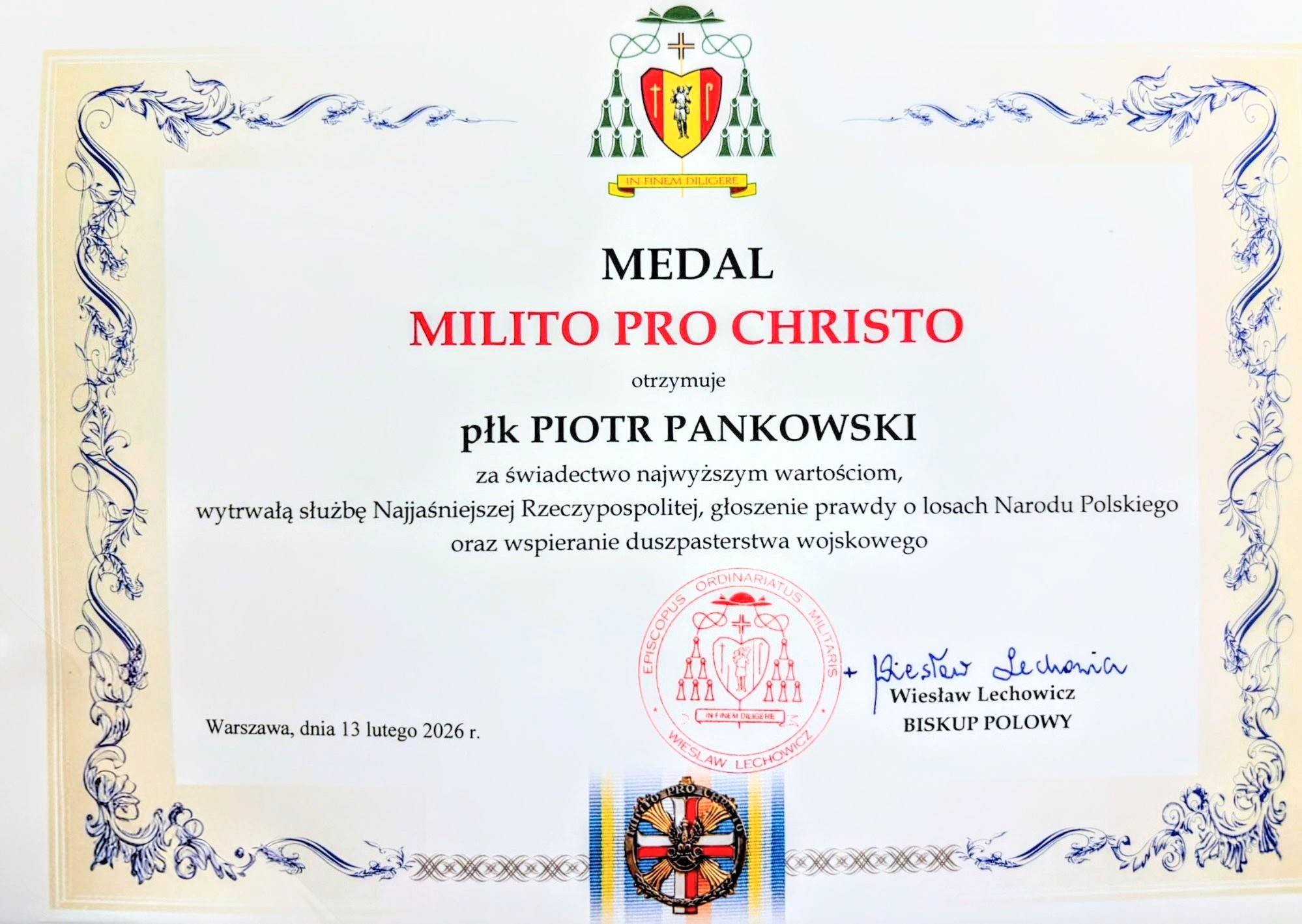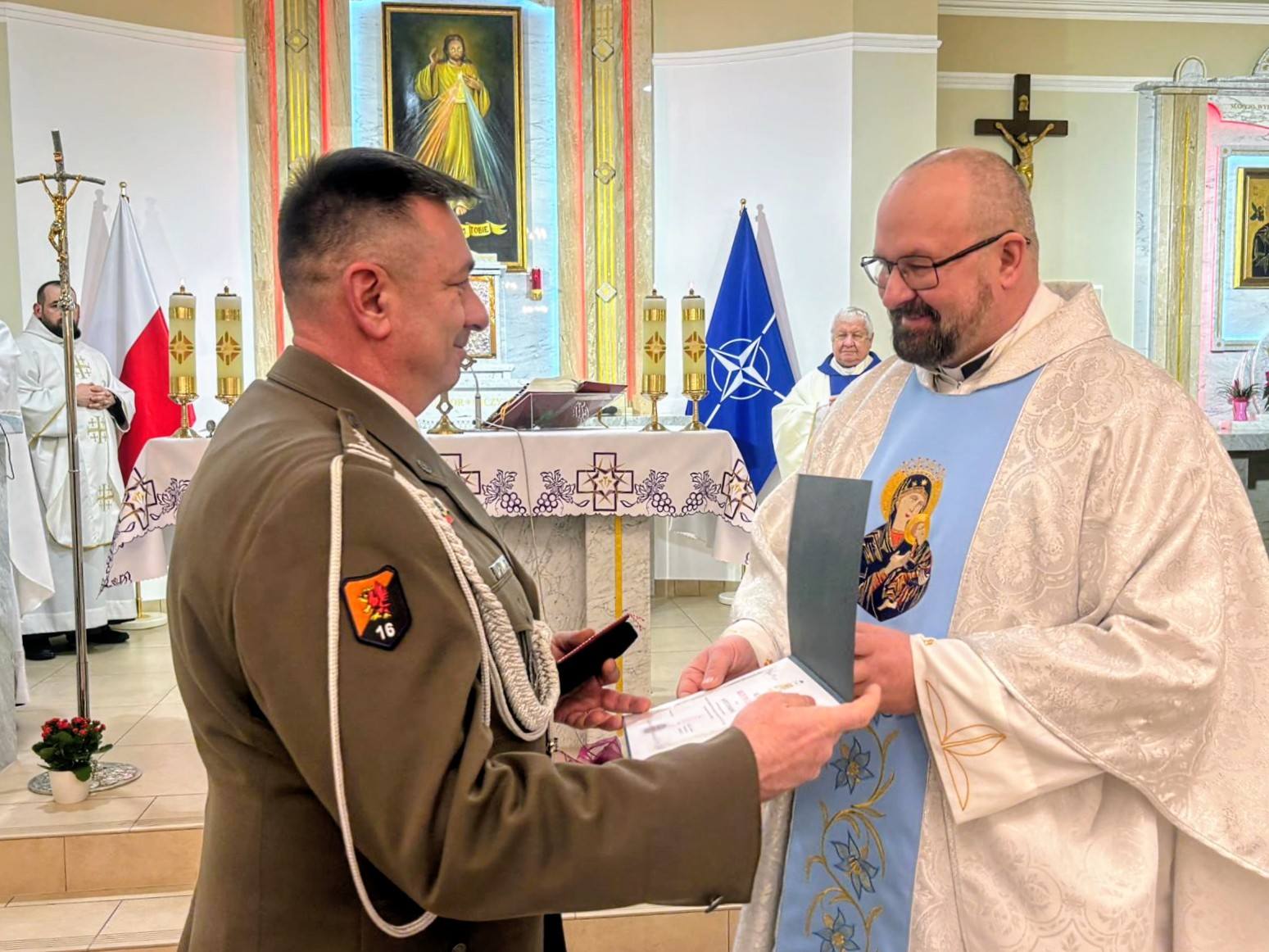 W nabożeństwie uczestniczył Dowódca 16 Pułk Logistyczny, płk Piotr Pankowski, który został wyróżniony Medalem Milito Pro Christo.