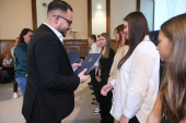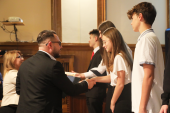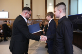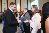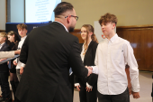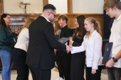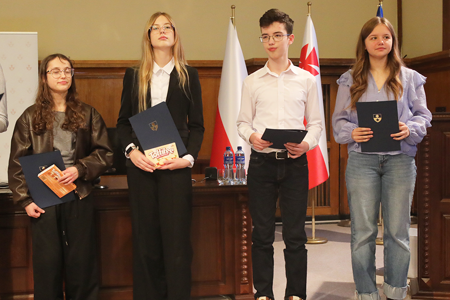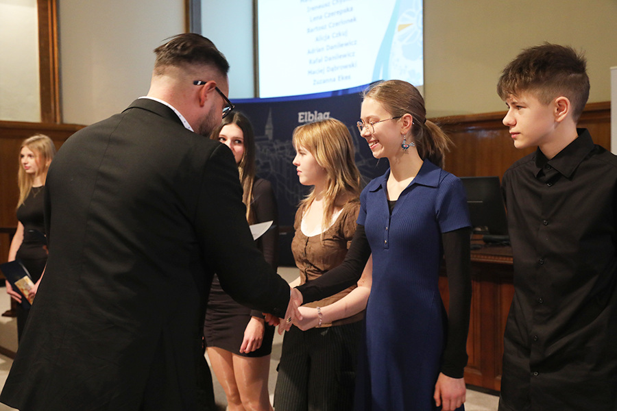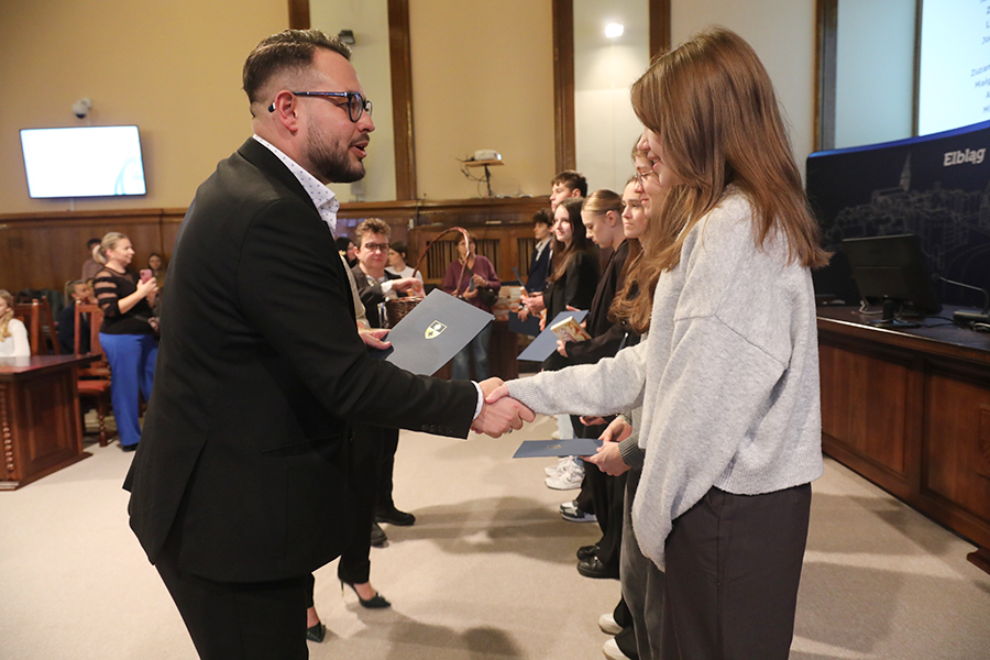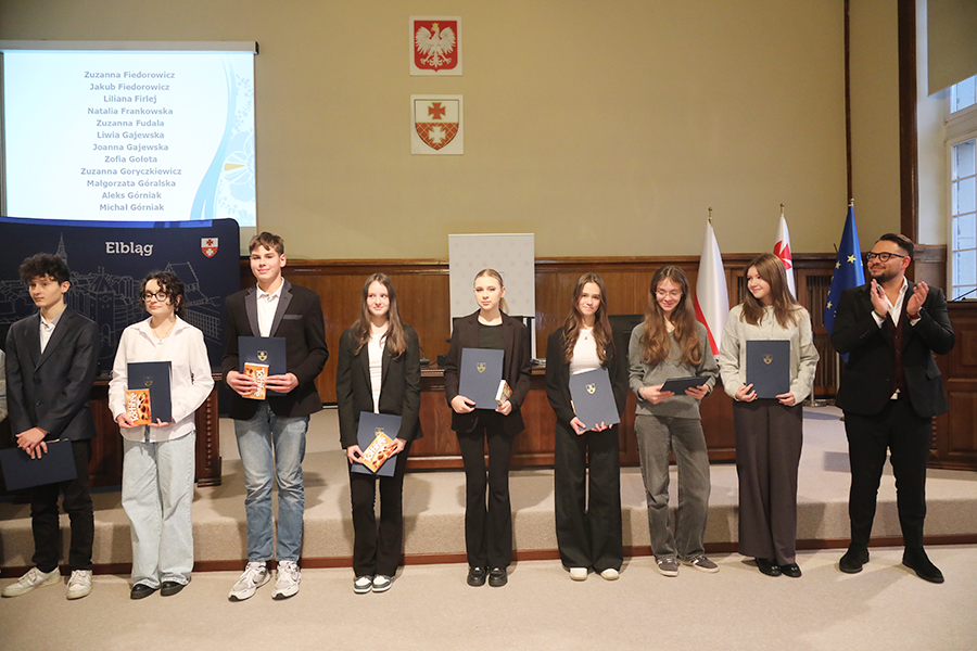 Uroczyste wręczenie stypendiów odbyło się dziś, 20 listopada, w sali sesyjnej Urzędu Miejskiego w Elblągu. Wsparcie zostało przyznane uczniom klas siódmych i ósmych szkół podstawowych, którzy wyróżniają się wyjątkowymi osiągnięciami w nauce oraz szczególnym zaangażowaniem w rozwijanie wiedzy. Warunkiem ubiegania się o stypendium było uzyskanie co najmniej średniej ocen 5,20 z obowiązkowych zajęć edukacyjnych w drugim półroczu roku szkolnego 2024/2025.