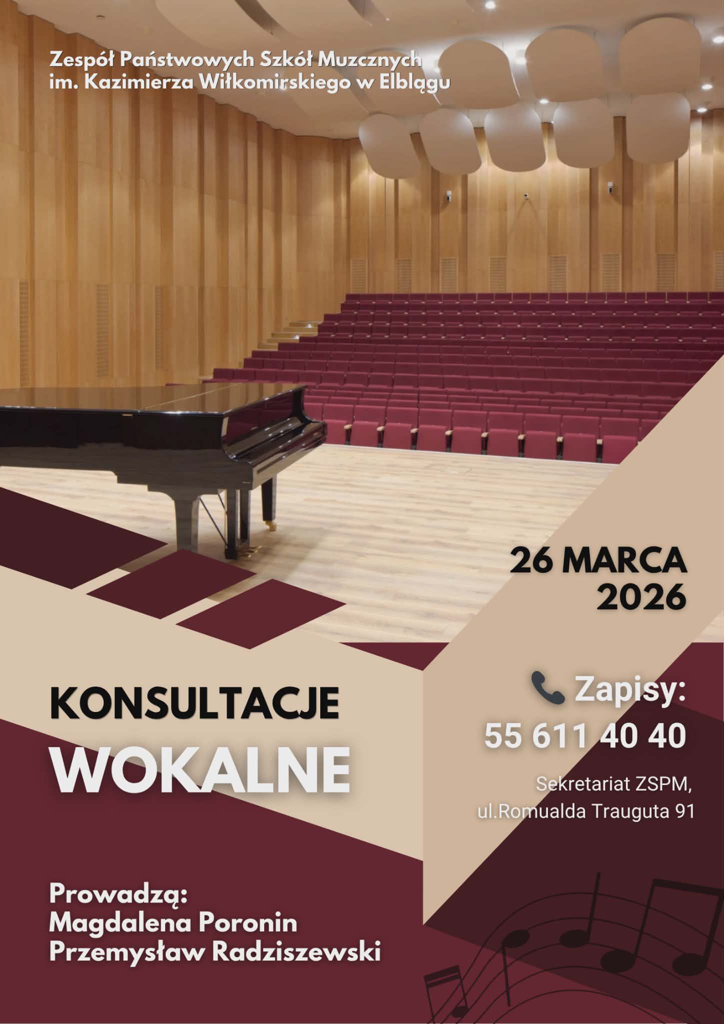 Zapraszamy na konsultacje wokalne dla kandydatów do klasy śpiewu.