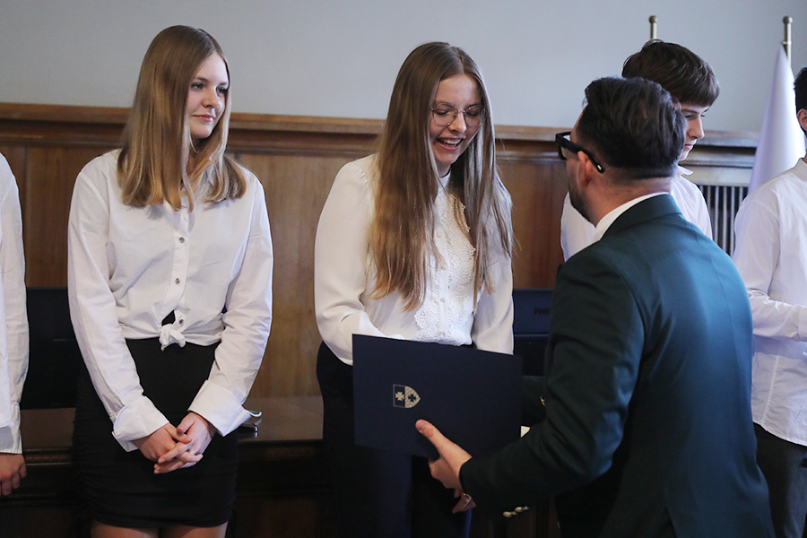 Stypendia wręczono dziś (31 marca) w Urzędzie Miejskim w Elblągu. Program ma charakter motywacyjny i służy wspieraniu rozwoju edukacyjnego młodzieży oraz rozwijaniu ich pasji i umiejętności.