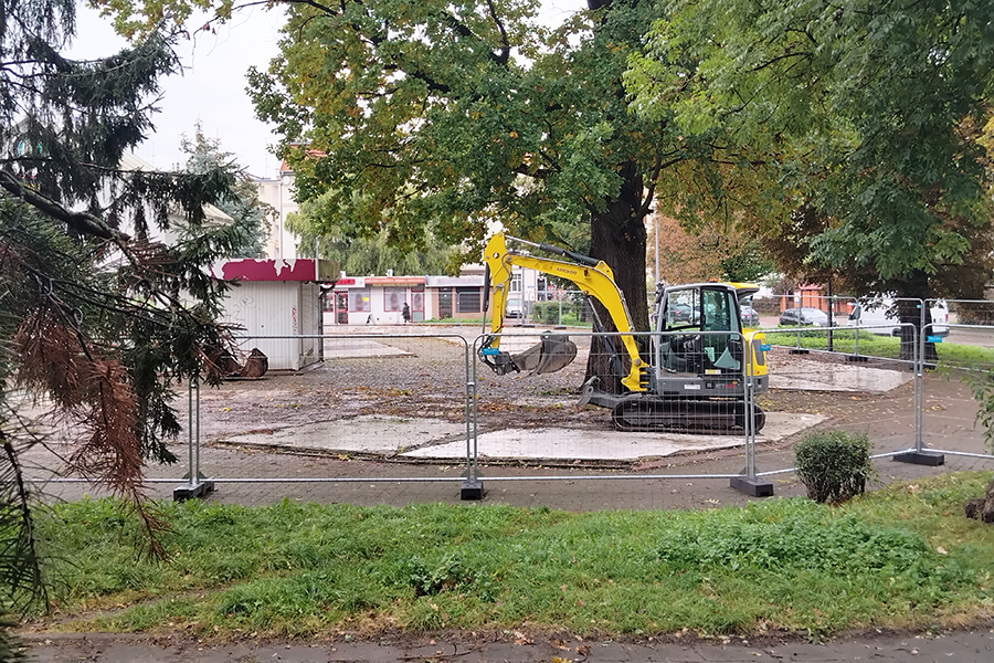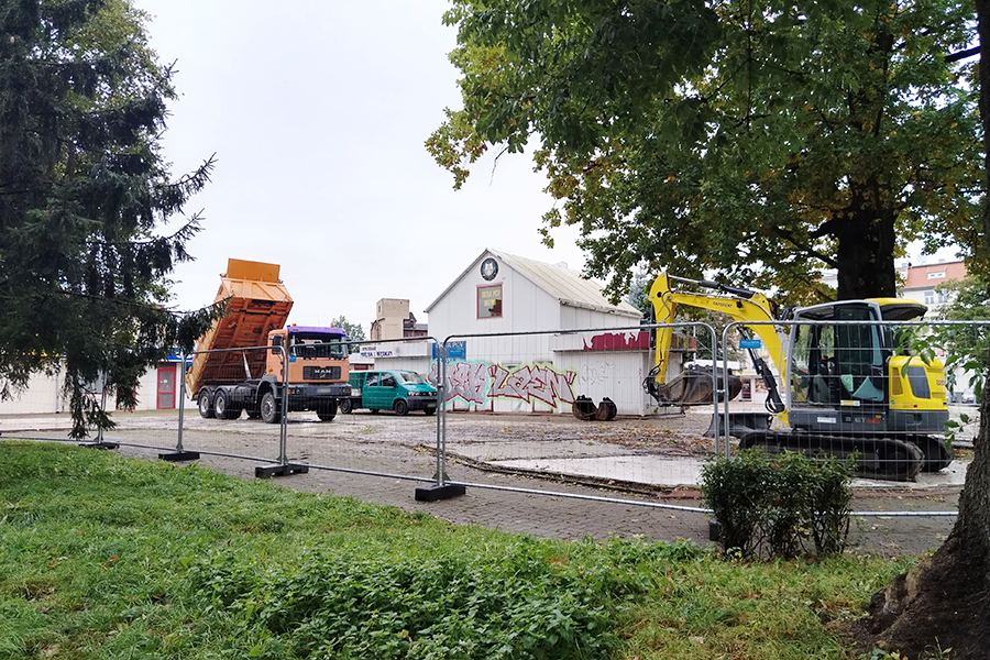 Koparki rozpoczęły pracę w miasteczku handlowym przy al. Armii Krajowej, a teren został ogrodzony. Puste miejsce po kilkudziesięciu rozebranych pawilonach wkrótce zmieni się w teren zielony.