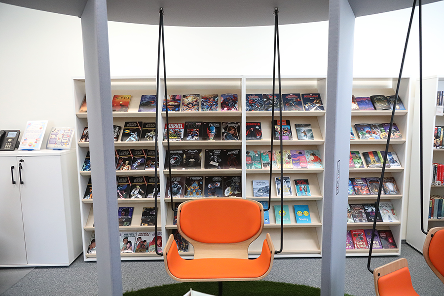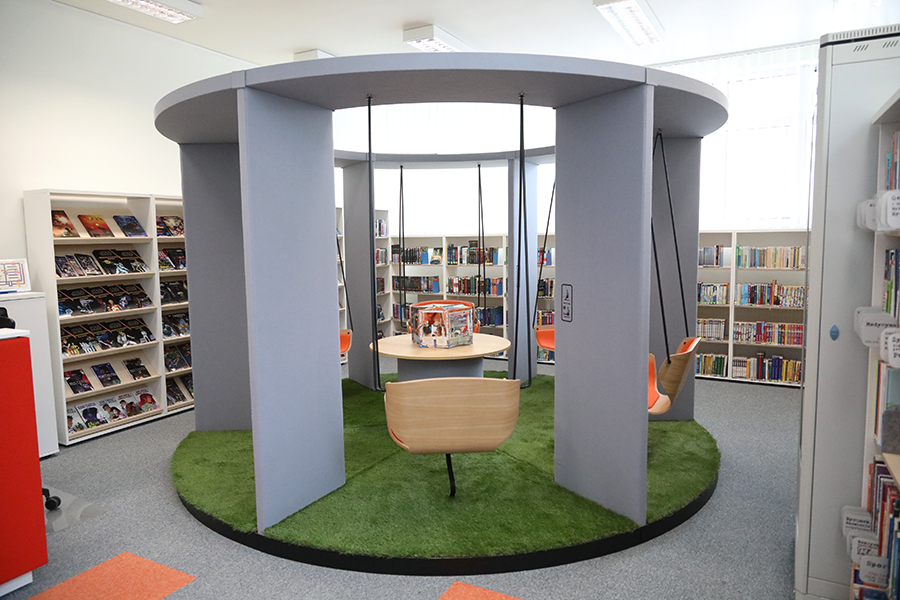 W bibliotece powstała nowa, wielofunkcyjna przestrzeń, dzięki czemu pomieszczenia filii stały się przestronniejsze, bardziej uporządkowane i przyjaźniejsze dla użytkowników. Znajdziemy tu m.in. strefę dla dorosłych „Kręgi Literatury”, w której obok literatury znalazło się miejsce do wypoczynku, Galerię Jednego Obrazu, w której będą prezentowane prace elbląskich twórców, oraz strefę dla najmłodszych „Krainę zmysłów i emocji”, w której oprócz dziecięcego księgozbioru znajduje się sprzęt multimedialny i pomoce sensoryczne dostosowane do potrzeb dzieci w różnym wieku rozwojowym. Nie zabrakło również strefy dla młodych. Czeka tu na nich literatura młodzieżowa, kolekcje popularnych komiksów, huśtawka społeczna czy budka akustyczna, w której można w ciszy odrabiać lekcje lub pracować nad projektem.