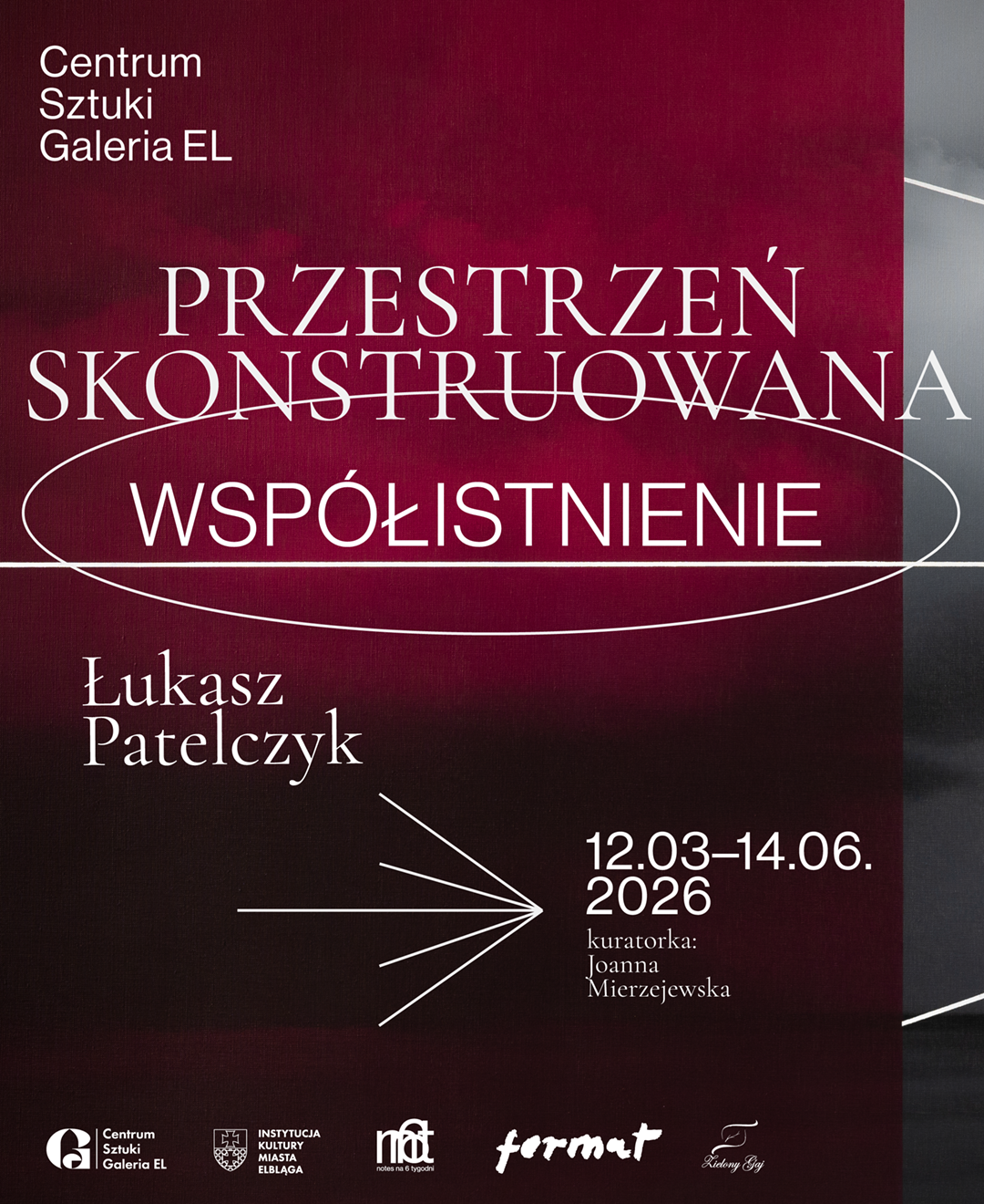 Indywidualna wystawa Łukasza Patelczyka, w ramach cyklu Cechy wspólne, cechy wyjątkowe, pn. „Przestrzeń skonstruowana – współistnienie” prezentowana w obu nawach Galerii EL jest spotkaniem dwóch porządków: współczesnej twórczości malarskiej artysty oraz historycznego profilu programowego instytucji, związanego z geometrią, sztuką konkretną i minimalizmem. Prezentacja prac Łukasza Patelczyka wpisuje się w tę tradycję, jednocześnie proponując jej aktualne, autorskie rozwinięcie.