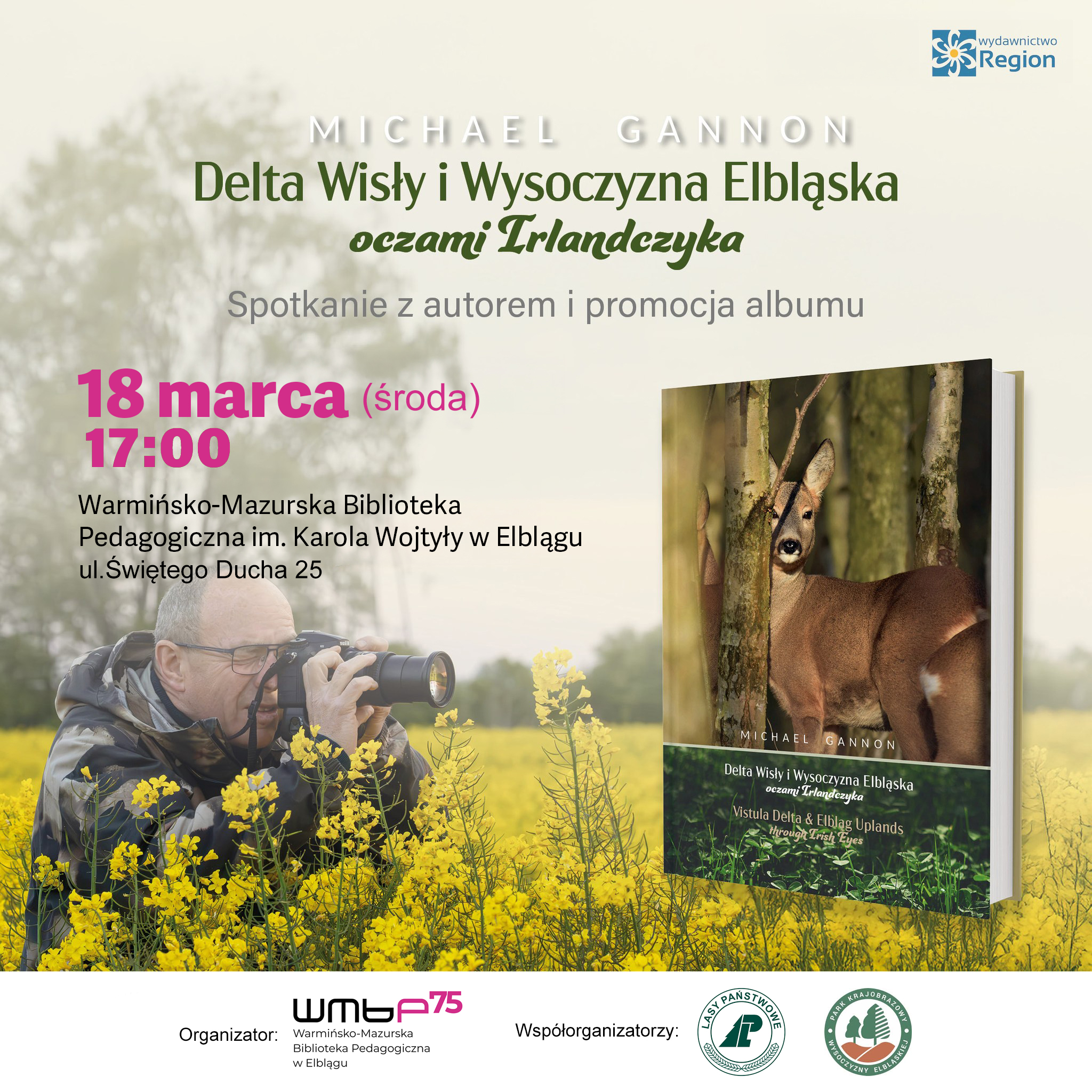 Spotkanie z autorem to nie tylko prezentacja albumu, to rozmowa o regionie, o jego walorach przyrodniczych i podkreślenie jakim skarbem jest Wysoczyzna Elbląska. Będzie to także okazja do rozmowy o sposobie pracy autora i o tym, jak fotografia może stać się ambasadorem miejsca.