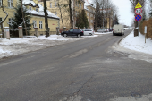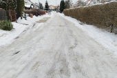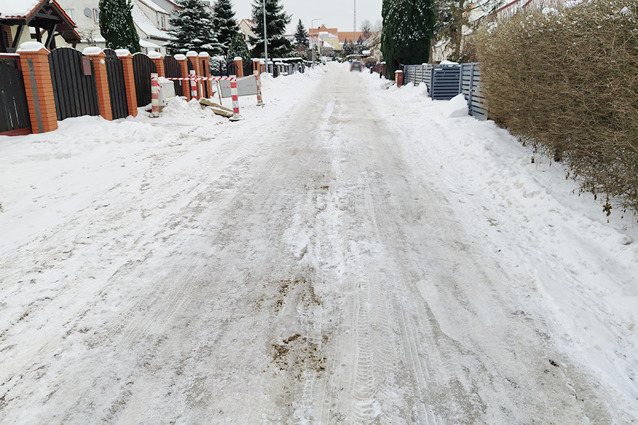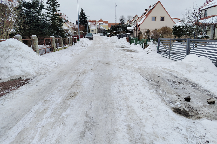 Ulica Artyleryjska - cała oblodzona i ubita śniegiem.