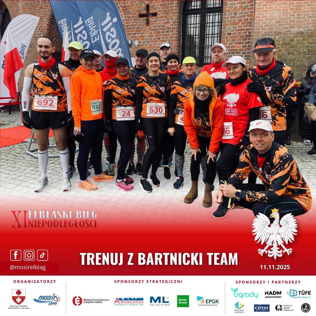 Elbląski Bieg Niepodległości to wyjątkowe wydarzenie, które z roku na rok cieszy się coraz większą popularnością wśród biegaczy. Już 11 listopada, przyjdzie im się zmierzyć na dystansie 10 km, indywidualnie lub w 3-osobowej sztafecie. Trwa wielkie odliczania do zawodów - to także doskonały moment na rozpoczęcie przygotowań do biegu i popracowanie nad formą, aby uzyskać jak najlepszy wynik. Zachęcamy do udziału we wspólnych treningach z doświadczoną ekipą biegaczy z Bartnicki Team Elbląg. Spotkania odbywają się trzy razy w tygodniu: poniedziałki, środy i piątki o godz. 18:30 na stadionie lekkoatletycznym przy ul. Saperów. Na zajęcia zapraszamy wszystkich, zarówno początkujących, jak i zaawansowanych biegaczy. To także doskonała okazja na wspólną wymianę doświadczeń i zawarcie nowych znajomości.