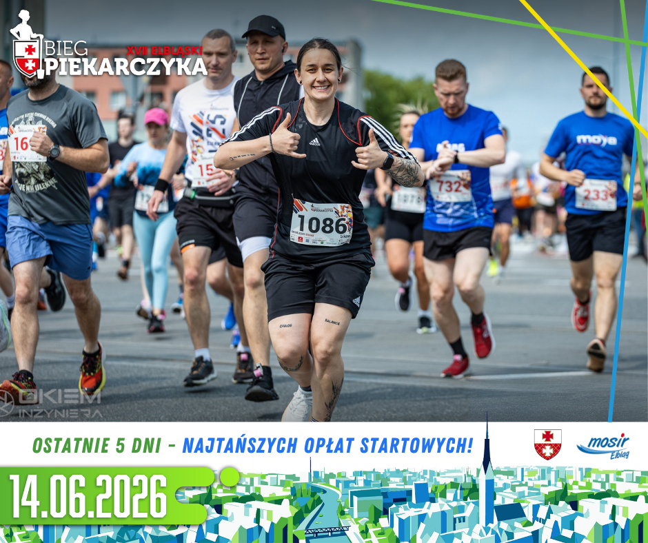 Zapisy na 17. Elbląski Bieg Piekarczyka (10 km, 5 km, bieg drużynowy oraz Mini Bieg Piekarczyka) trwają. Tylko do 1 marca (niedziela) obowiązuje najniższa opłata startowa – 70 zł lub 63 zł z kartą „wElblągu”. Warto pamiętać, że samo zapisanie się na listę startową bez dokonania płatności nie gwarantuje udziału w wydarzeniu. Rejestracja prowadzona jest przez serwis elektronicznezapisy.pl.