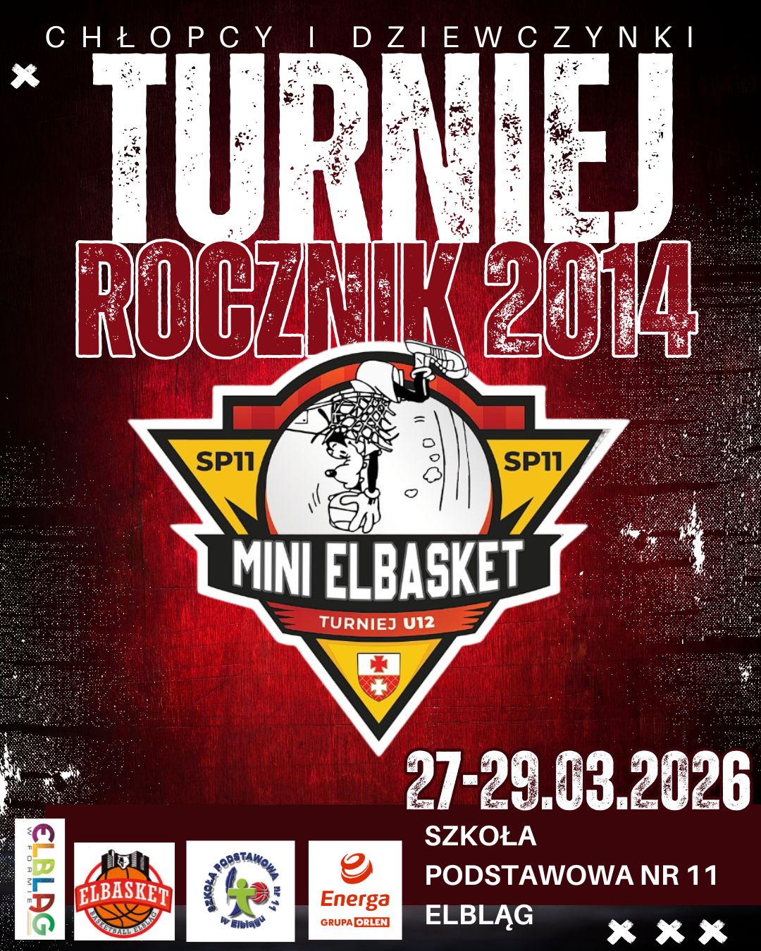 W dniach 27-29.03.2026 w Elblągu w halach sportowych Szkoły Podstawowej nr 11 odbędzie się Ogólnopolski Turniej Koszykówki Chłopców i Dziewcząt w kategorii U12 MINI ELBASKET.
