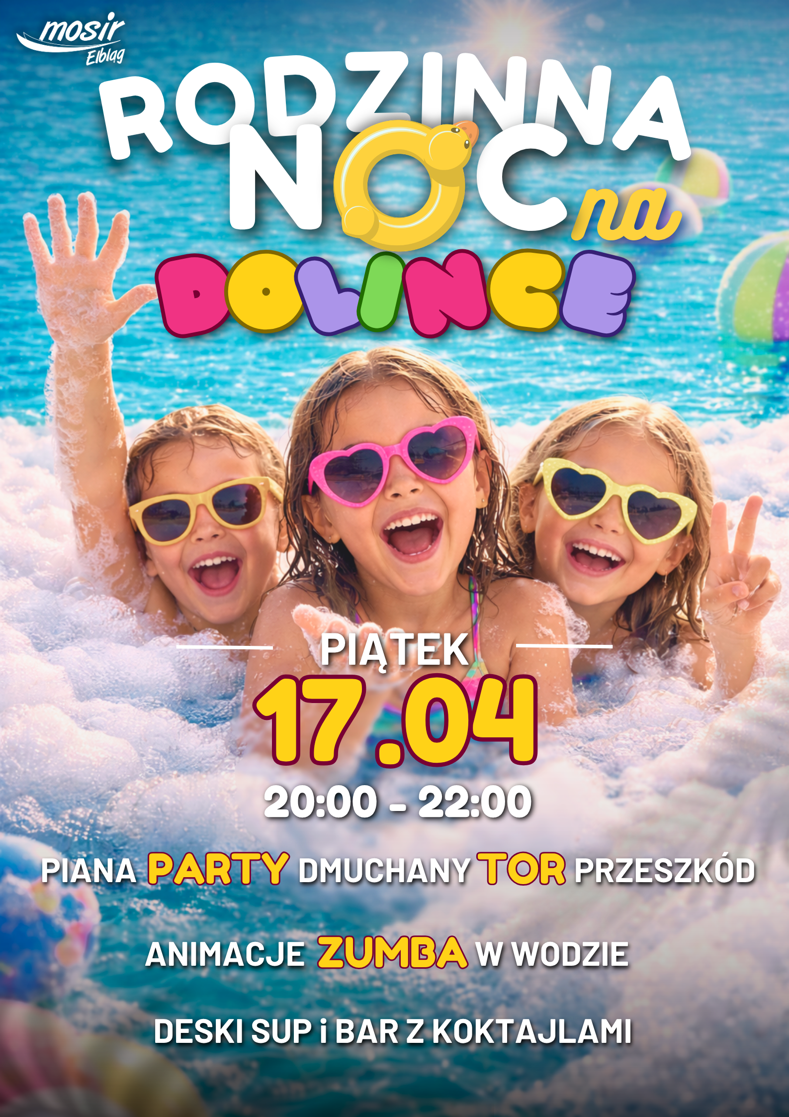 Tęskniliście za wieczorem pełnym wodnych atrakcji, muzyki i dobrej zabawy? Mamy dobrą wiadomość — Rodzinna Noc wraca na Dolinkę! Już wkrótce Centrum Rekreacji Wodnej Dolinka ponownie zamieni się w miejsce pełne wspólnej rozrywki. Rodzinna Noc odbędzie się 17 kwietnia w godzinach 20:00–22:00, a na uczestników czekać będzie mnóstwo aktywności przygotowanych z myślą zarówno o dzieciach, jak i dorosłych.