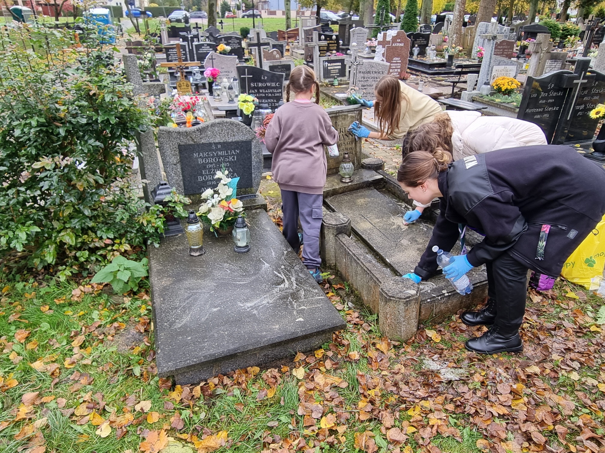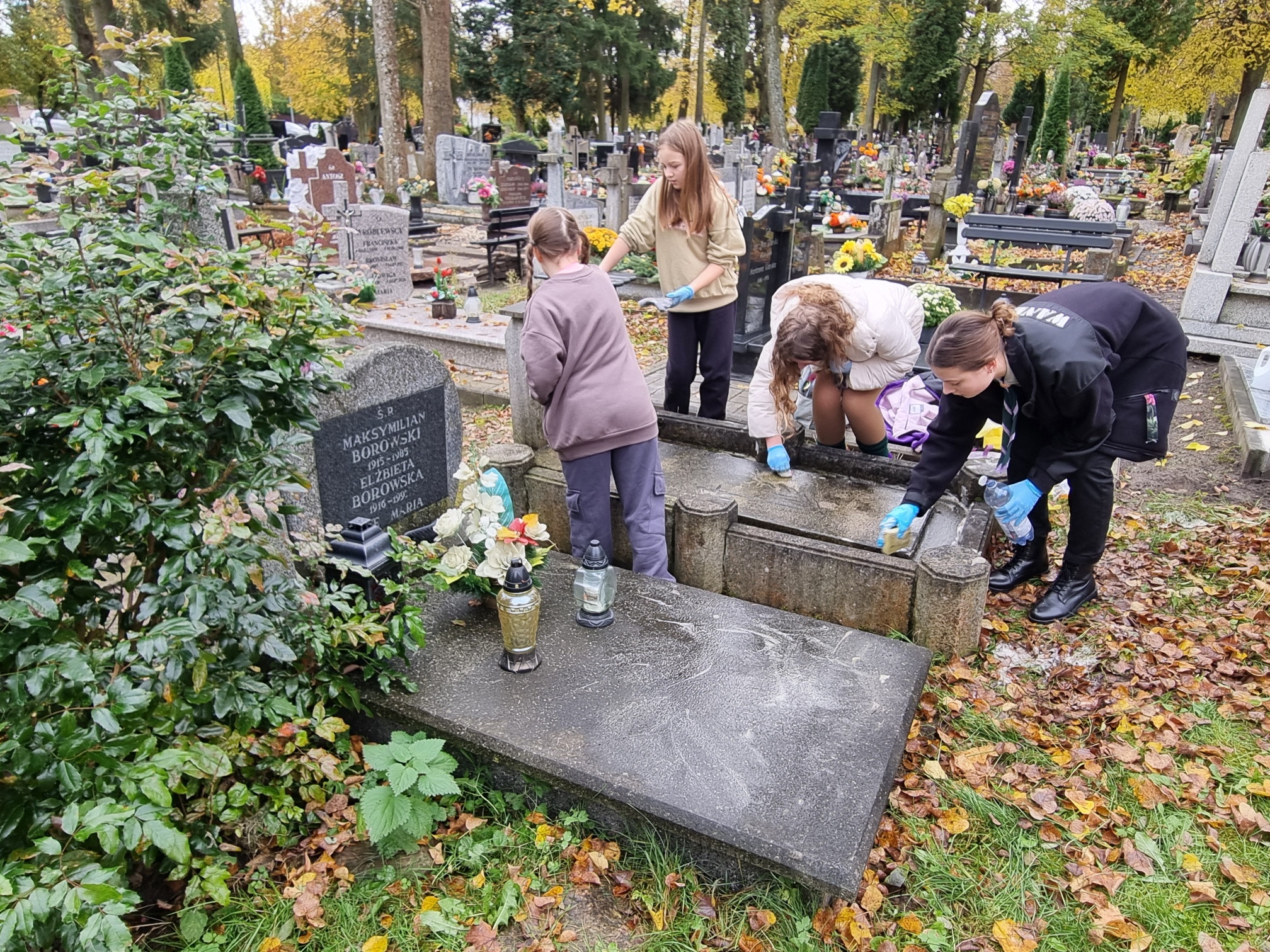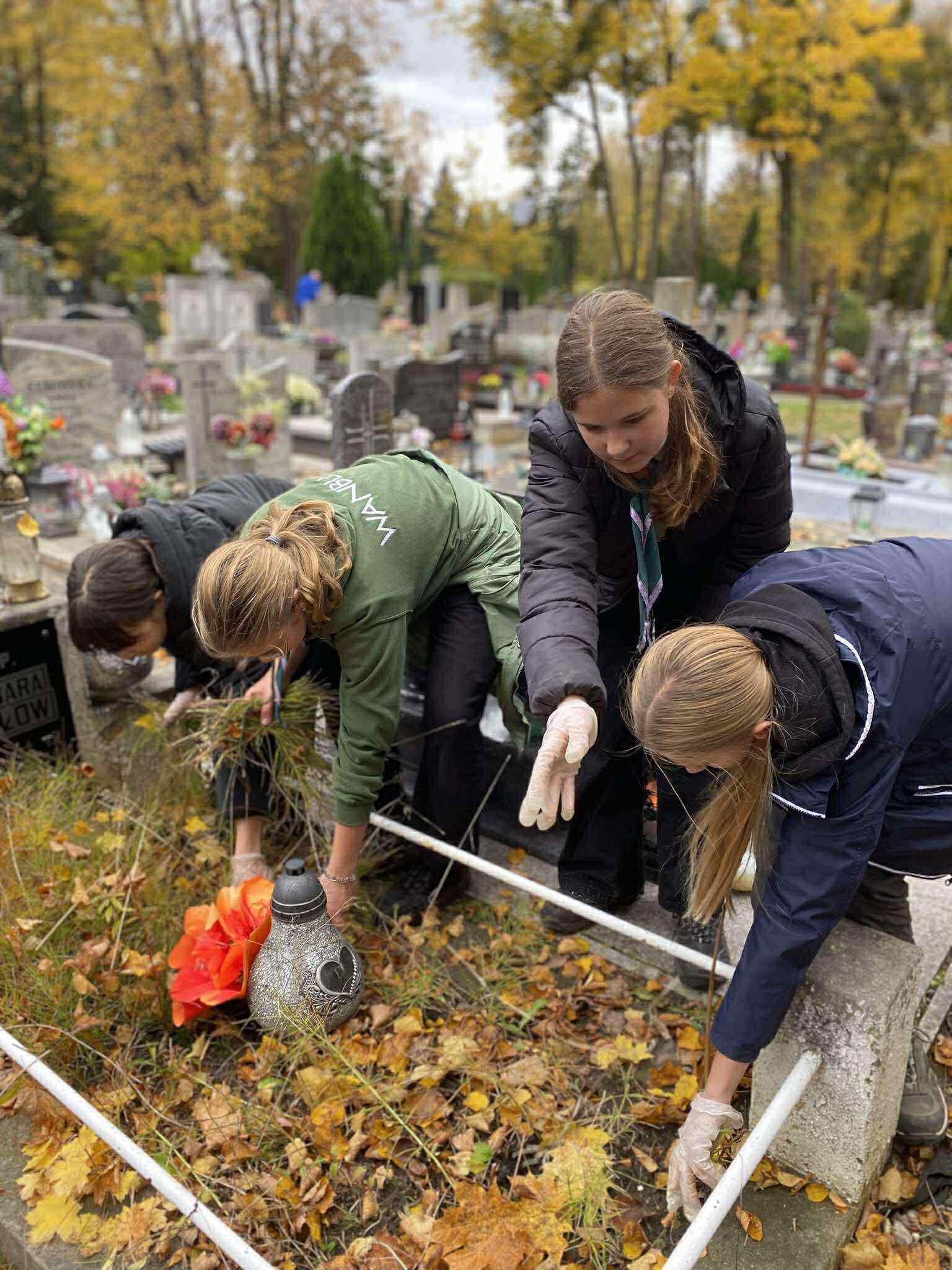 Nasz hufiec co roku organizuje akcję 'Ocalić od zapomnienia', więc i naszej drużyny nie mogło zabraknąć. Przychodzimy tu, aby w szczególności zadbać o te groby, o których już nikt nie pamięta. Nie mamy specjalistycznego sprzętu do czyszczenia, po prostu doprowadzamy je do porządku, aby godnie móc zapalić świeczkę i postawić znicz. W tym roku w akcji uczestniczyło 17 dziewczyn, więc po rozdzieleniu się miałyśmy możliwość uporządkowania większej ilości grobów. Udało nam się zaopiekować około dziewięcioma miejscami.