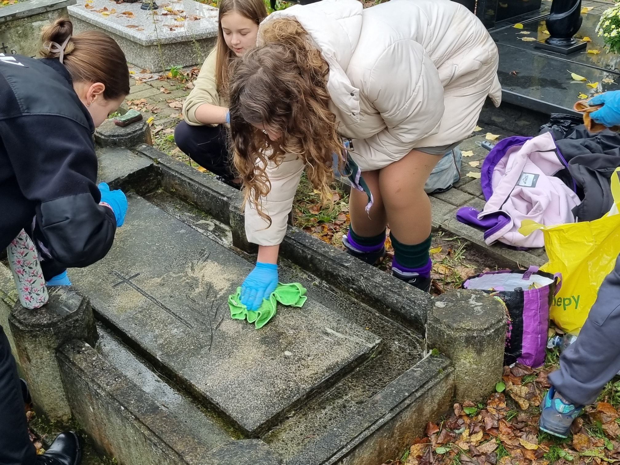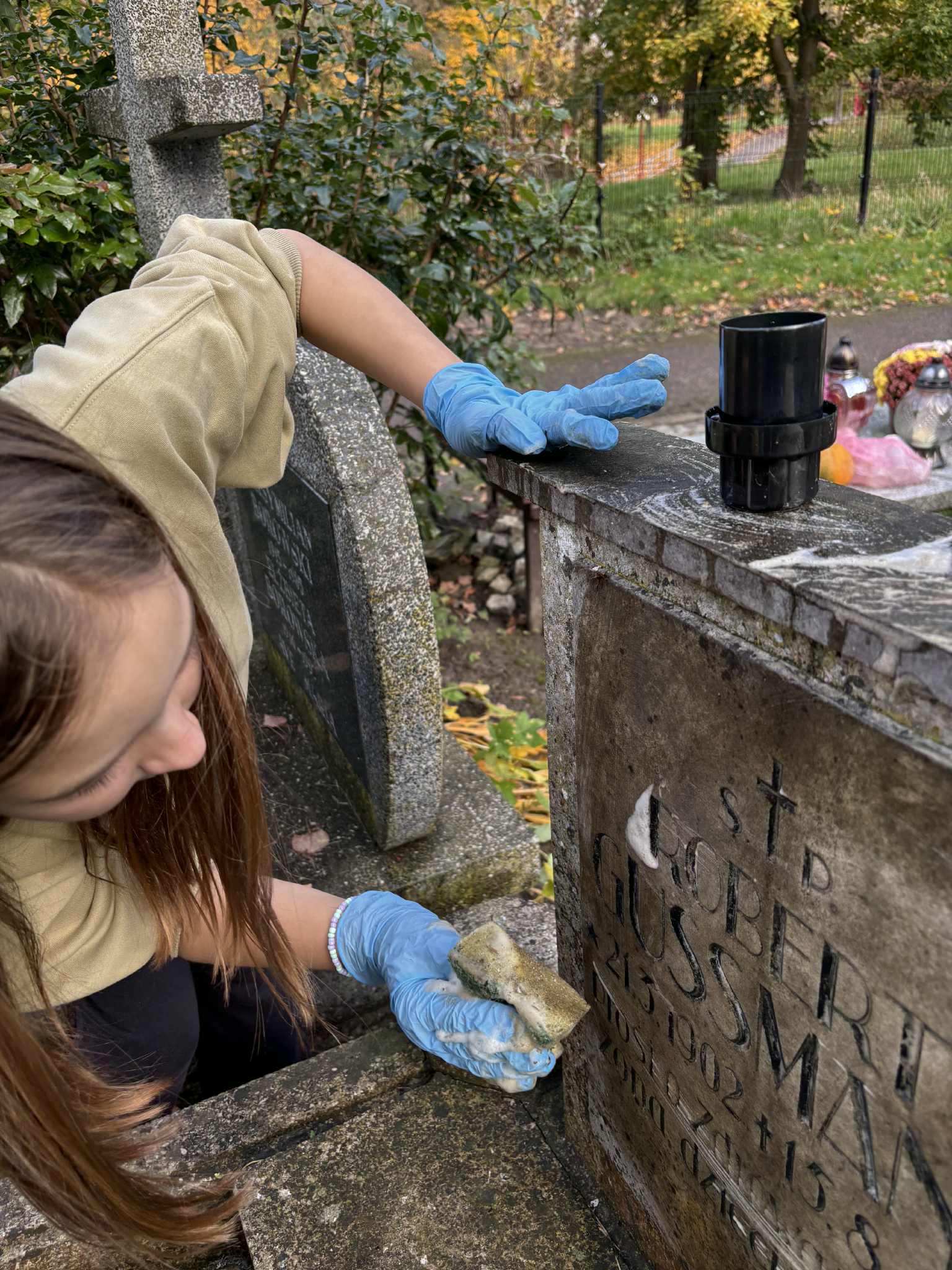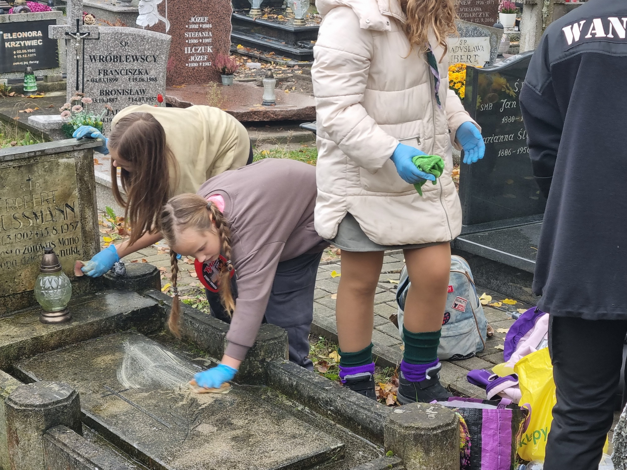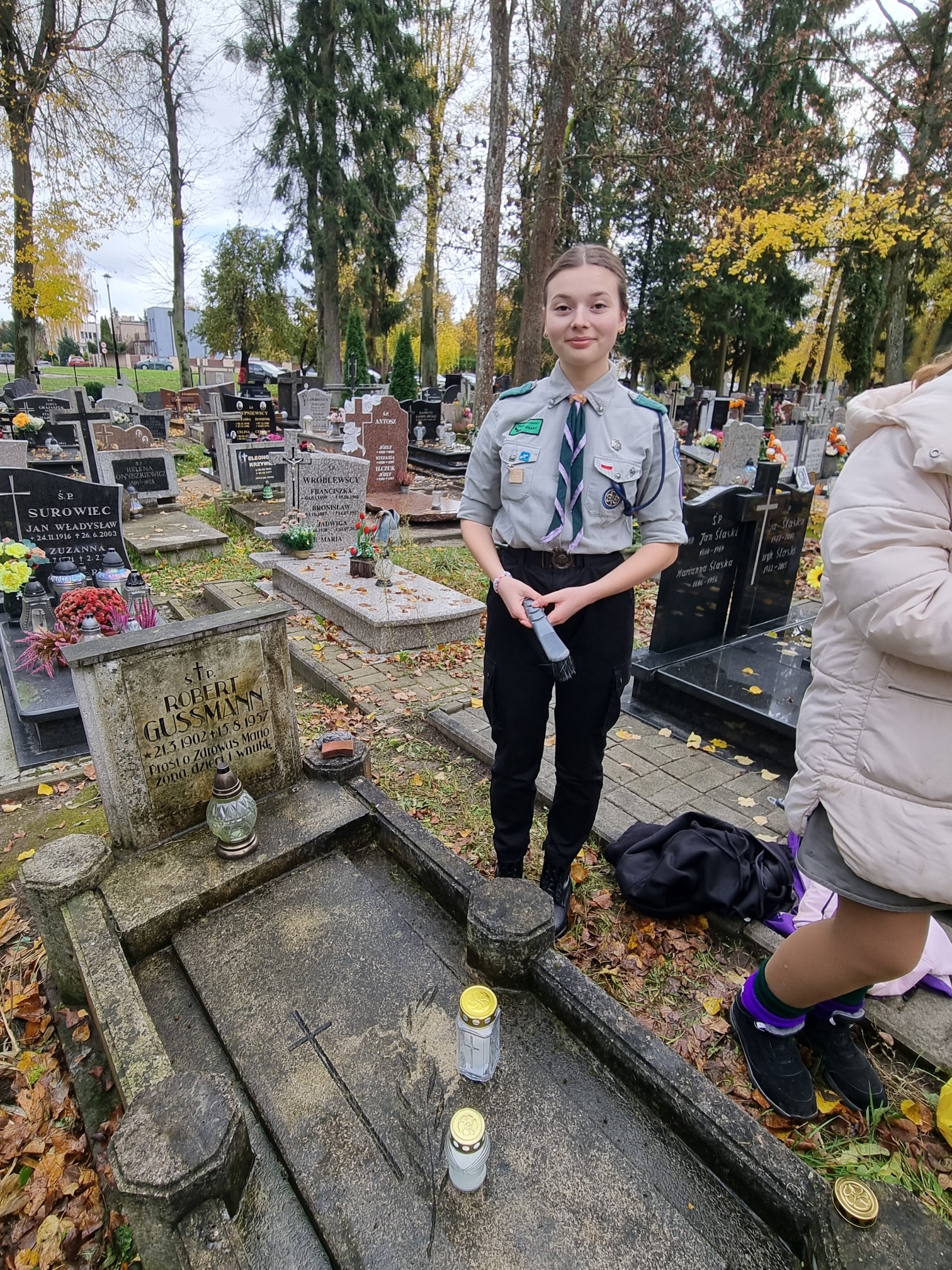 Nasz hufiec co roku organizuje akcję 'Ocalić od zapomnienia', więc i naszej drużyny nie mogło zabraknąć. Przychodzimy tu, aby w szczególności zadbać o te groby, o których już nikt nie pamięta. Nie mamy specjalistycznego sprzętu do czyszczenia, po prostu doprowadzamy je do porządku, aby godnie móc zapalić świeczkę i postawić znicz. W tym roku w akcji uczestniczyło 17 dziewczyn, więc po rozdzieleniu się miałyśmy możliwość uporządkowania większej ilości grobów. Udało nam się zaopiekować około dziewięcioma miejscami.