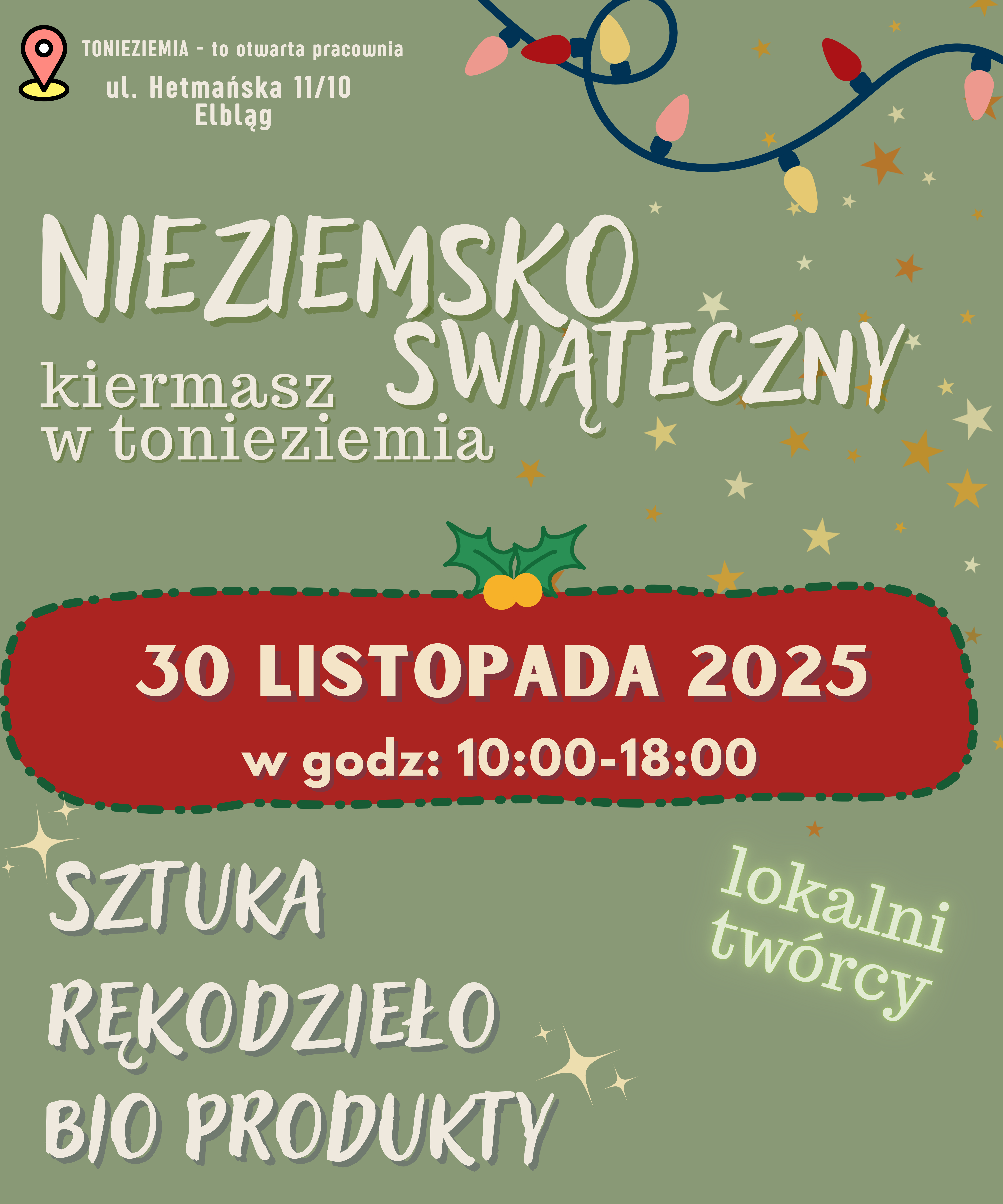 Nieziemsko świąteczny kiermasz w tonieziemia to małe, przedświąteczne spotkanie z lokalnymi twórcami, sztuką, rękodziełem i naturalnymi produktami.