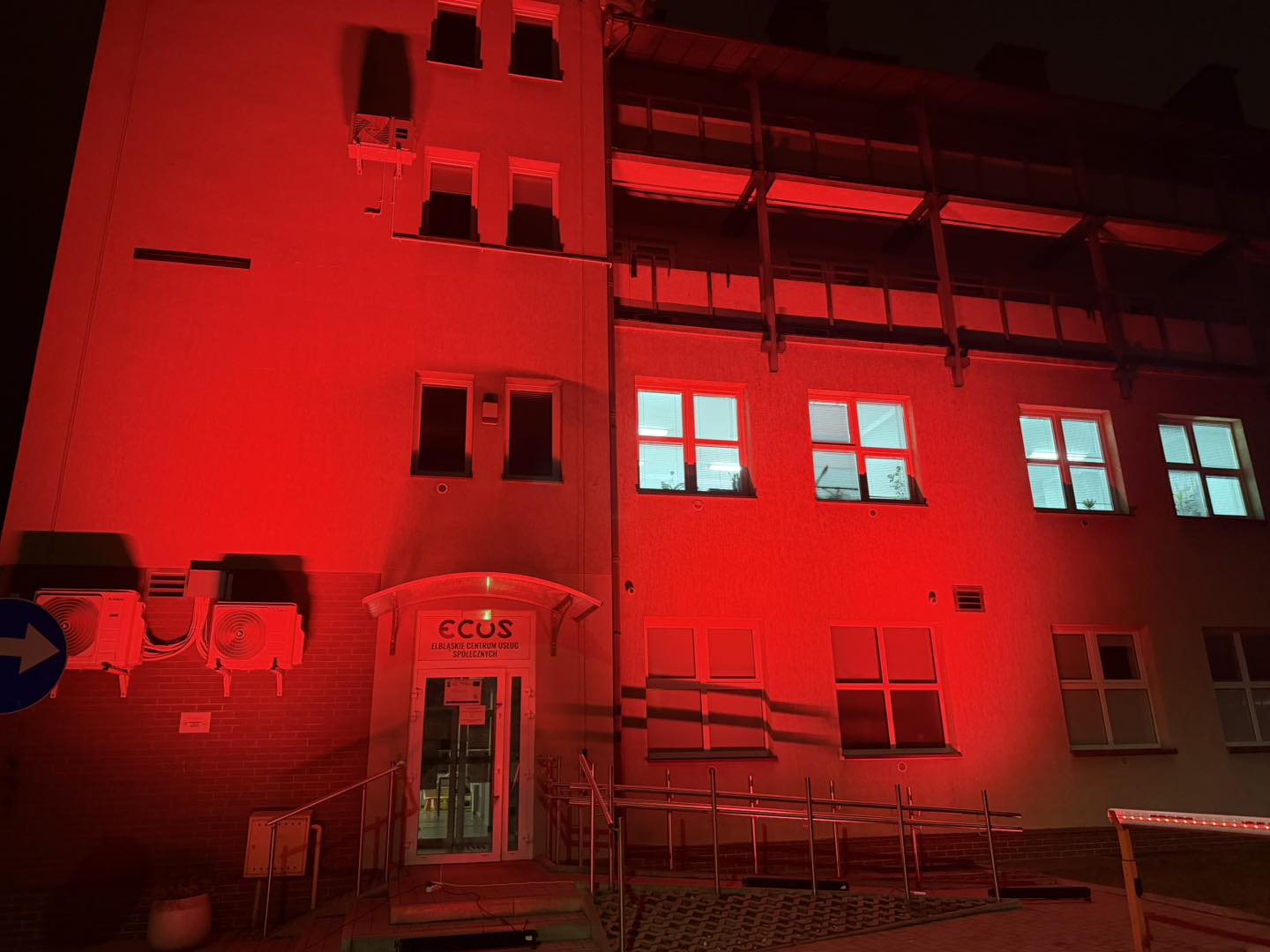 Wczoraj wieczorem nasz budynek zaświecił się na czerwono. To symbol, który ma zatrzymać nas na chwilę i przypomnieć, że krzywda dzieci wciąż dzieje się obok nas.