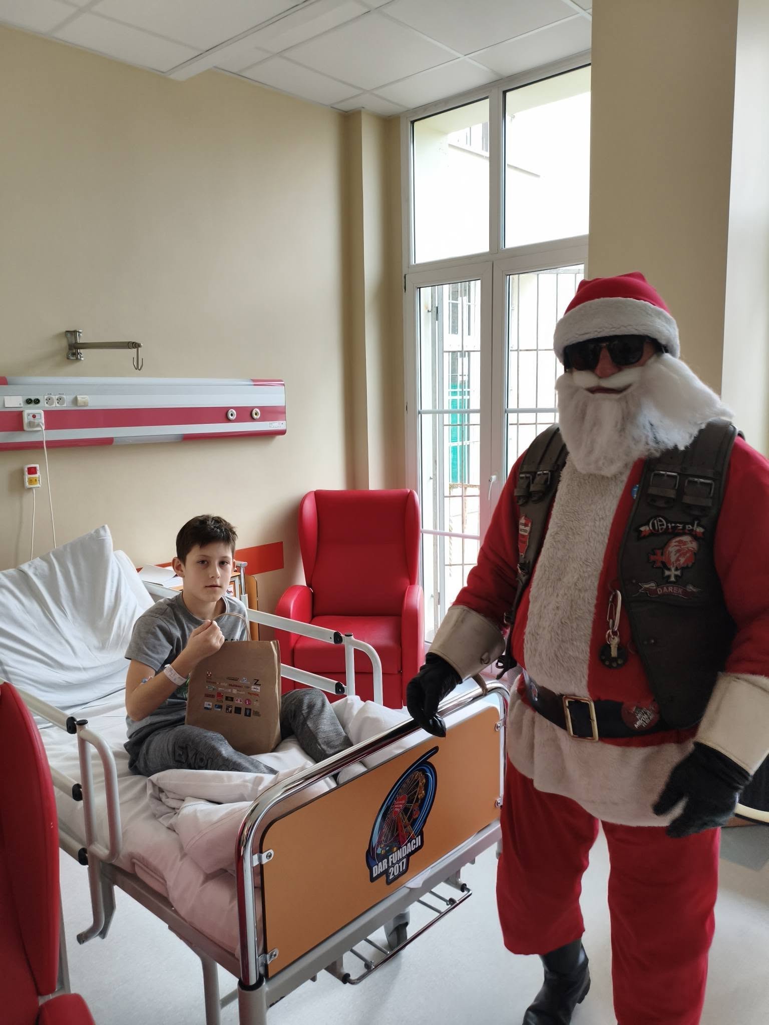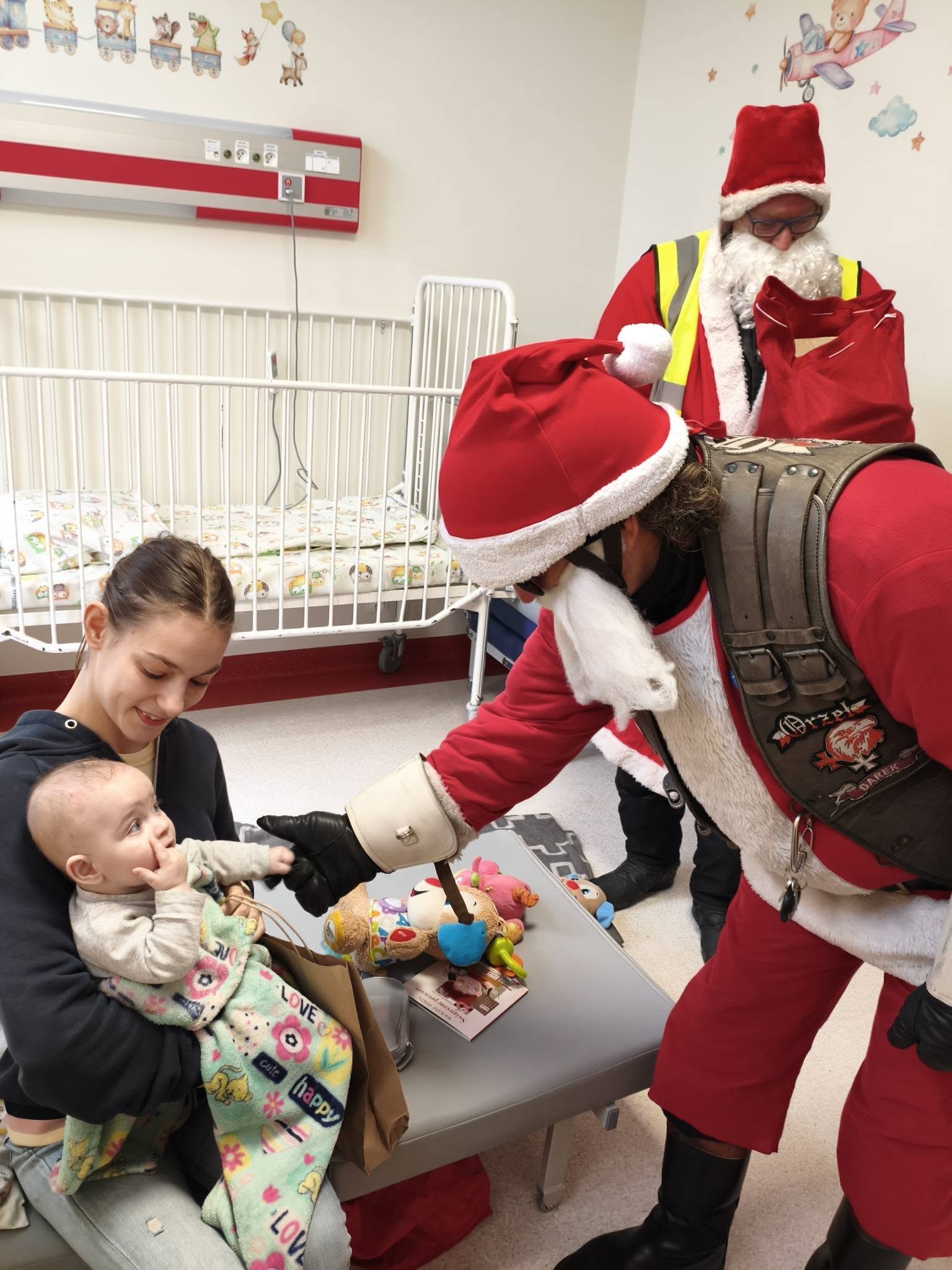 Do najmłodszych pacjentów z Oddziału Pediatrii oraz Oddziału Chirurgii Dziecięcej przyjechały quadami, motorami, saniami i samochodem ciężarowym Moto Mikołaje z prezentami.
