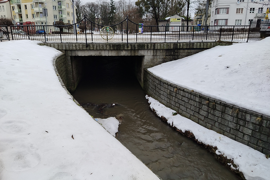 Śluza na dolince przed mostem na ul.Gornoslaskiej.