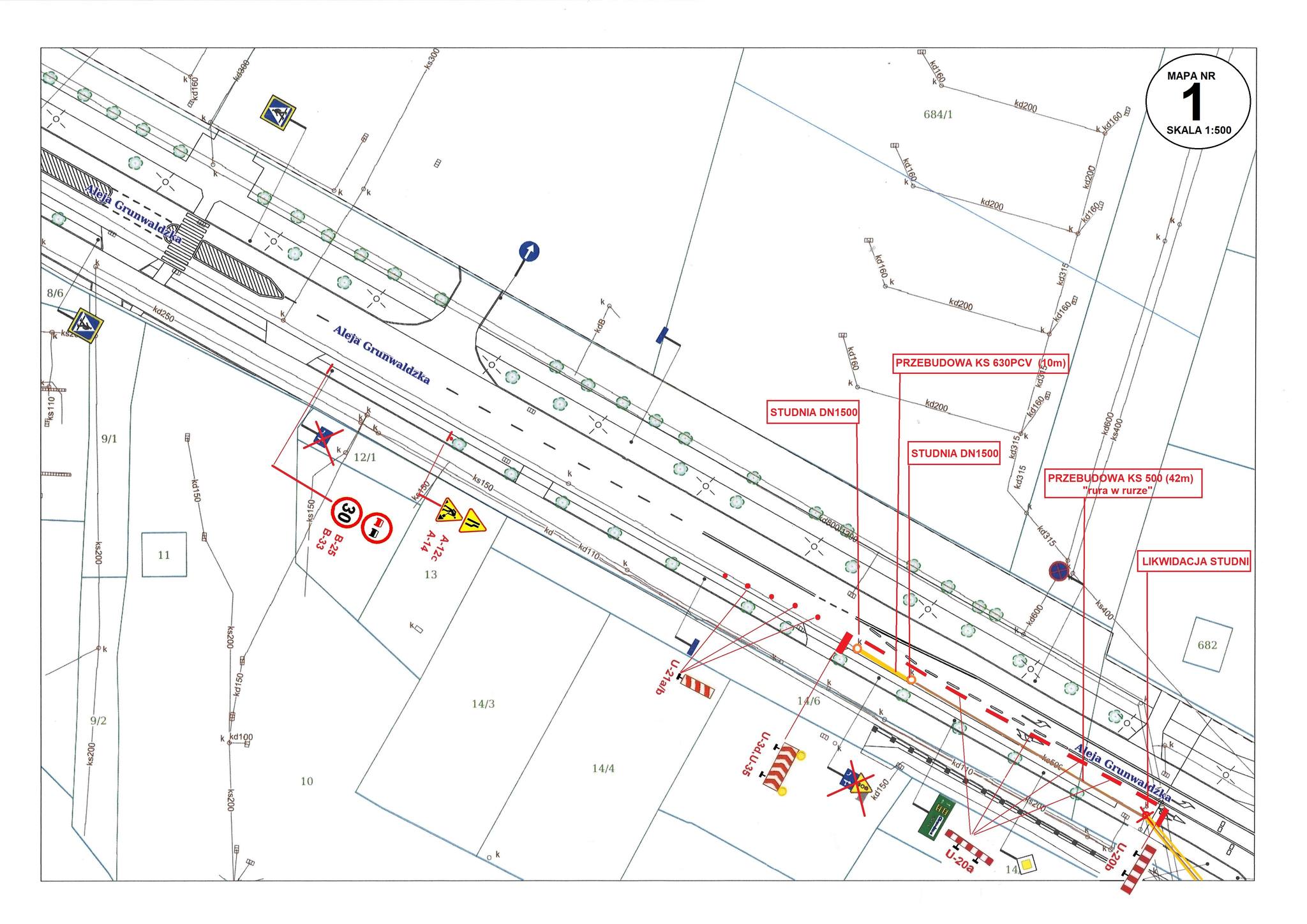 W związku z powyższym wprowadzona zostanie zmiana organizacji ruchu na Al. Grunwaldzkiej zgodnie z zatwierdzonym projektem czasowej organizacji ruchu.