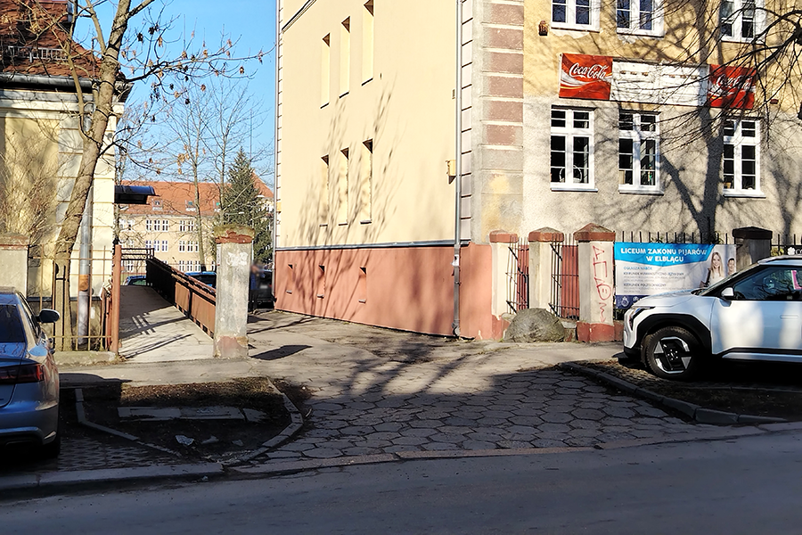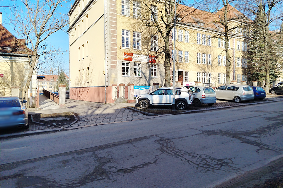 Kierowcy sygnalizują, że wyjazd jest kłopotliwy z powodu ograniczonej widoczności – zaparkowane samochody, drzewa. Podobny wjazd/ wyjazd jest nieco dalej, lecz tam jest ustawiane lustro drogowe