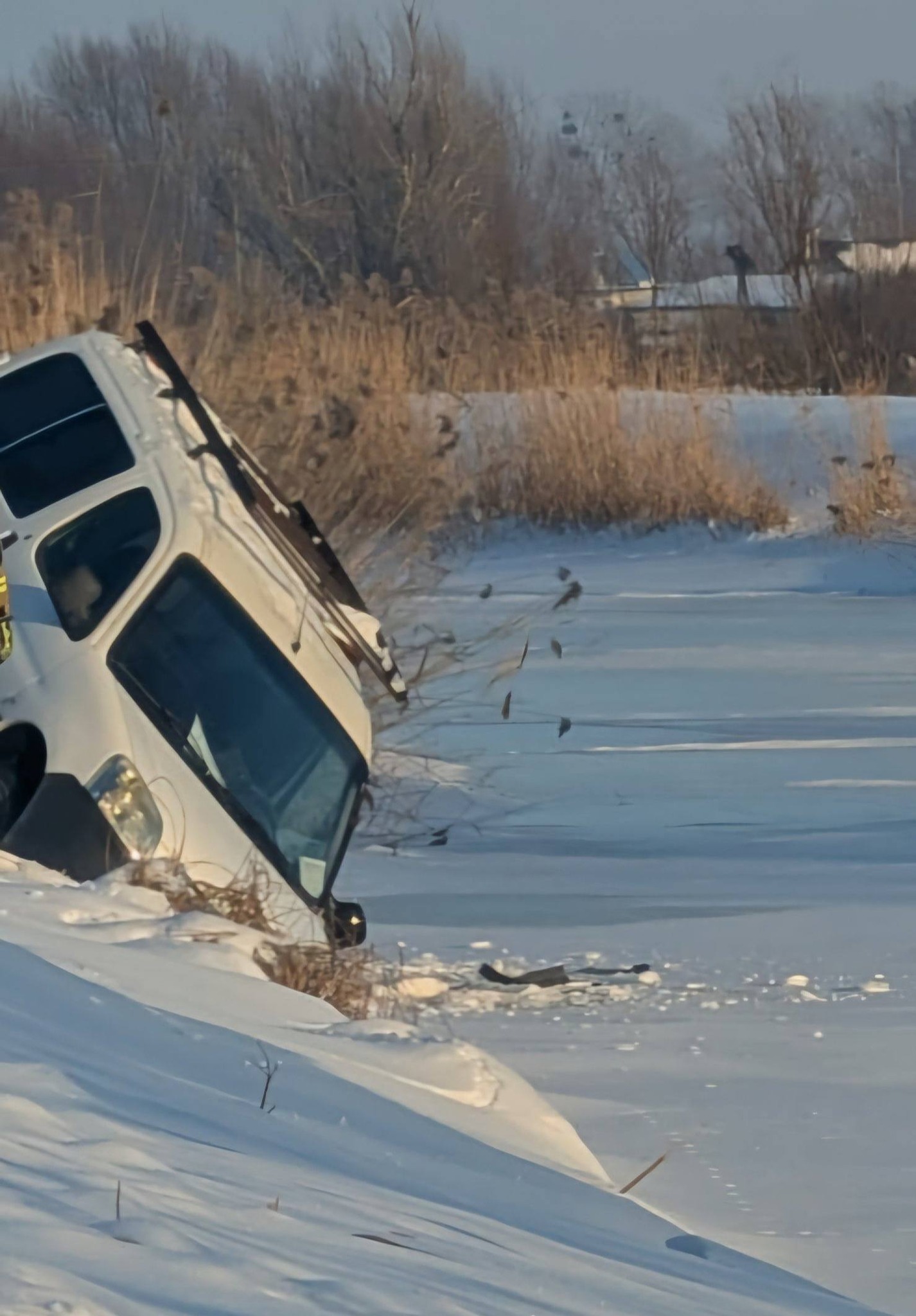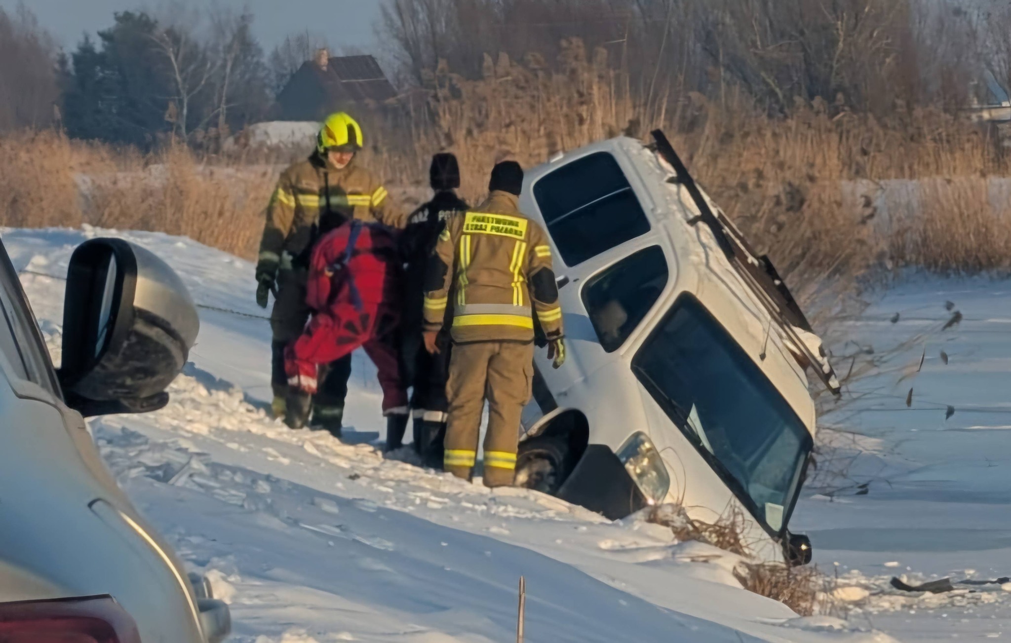 To, zsuneło się z wału zatrzymując przy znajdującym się tam, zamarznietym Kanale Modrym. Kilka metrów dalej i samochód z kierującym znalazł by się pod lodem.
