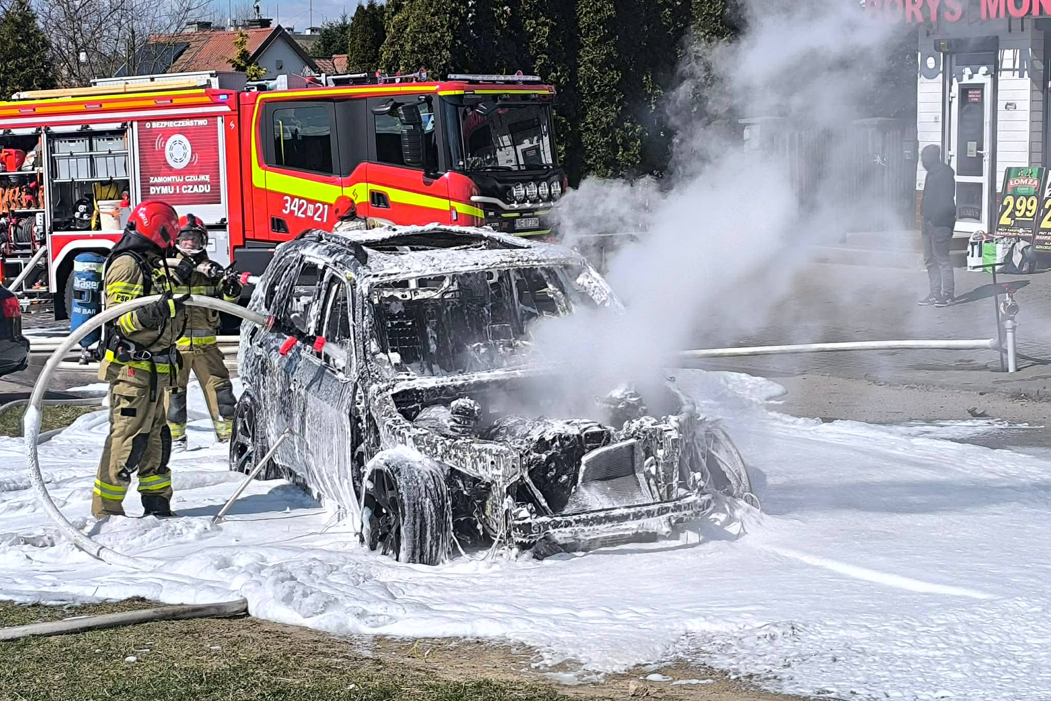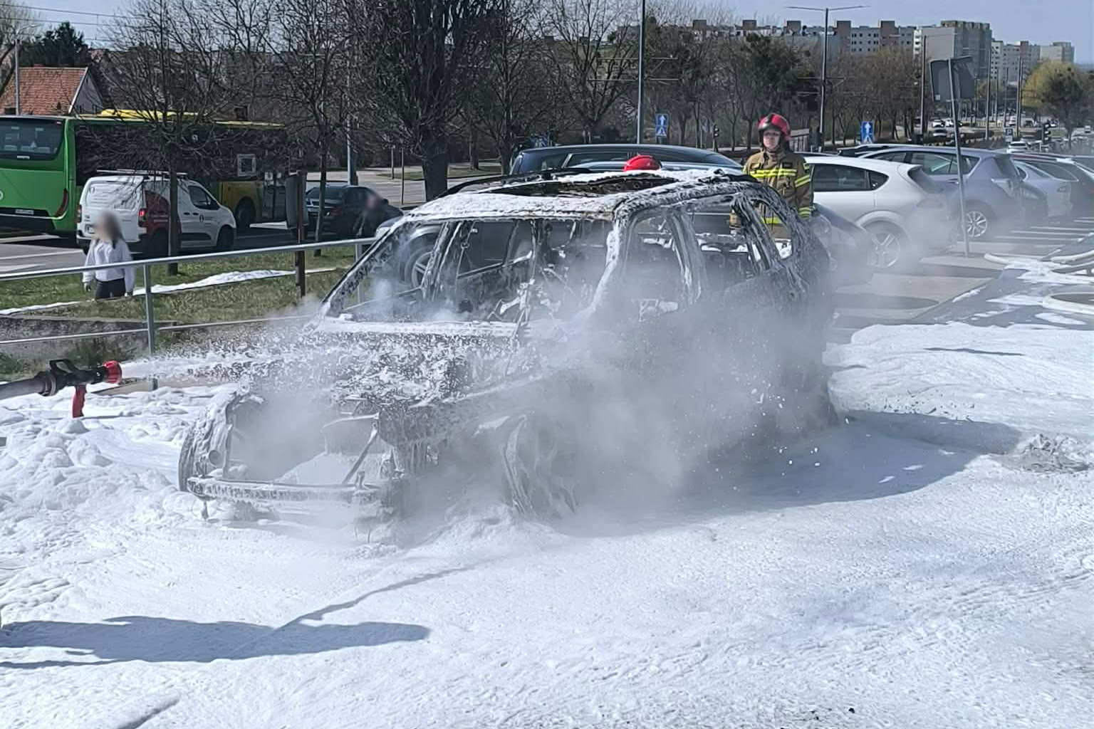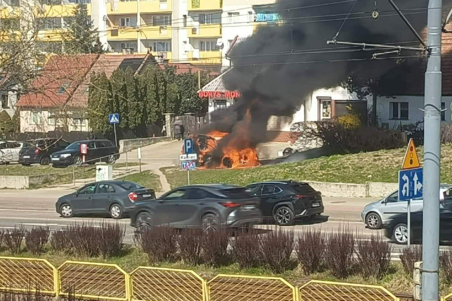 Dziś, 10 kwietnia, w samo południe doszło do pożaru samochodu osobowego na parkingu przy ulicy Ogólnej, na osiedlu Nad Jarem w Elblagu. Kłęby czarnego dymu unosiły się nad całym osiedlem. Samochód spłonął całkowicie.