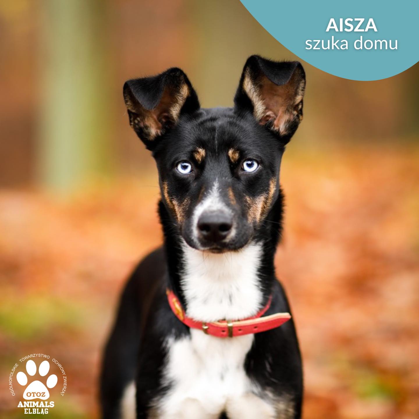 Aisza to zjawiskowo piękna, ok. 1-roczna sunia. Jest ufną i przyjazną wobec ludzi istotką. Uwielbia szaleństwa i zabawy, długie spacery i figle. Jest młodziutka, więc i ochoczo nastawiona na współpracę z człowiekiem. Uwielbia, gdy coś się dzieje.