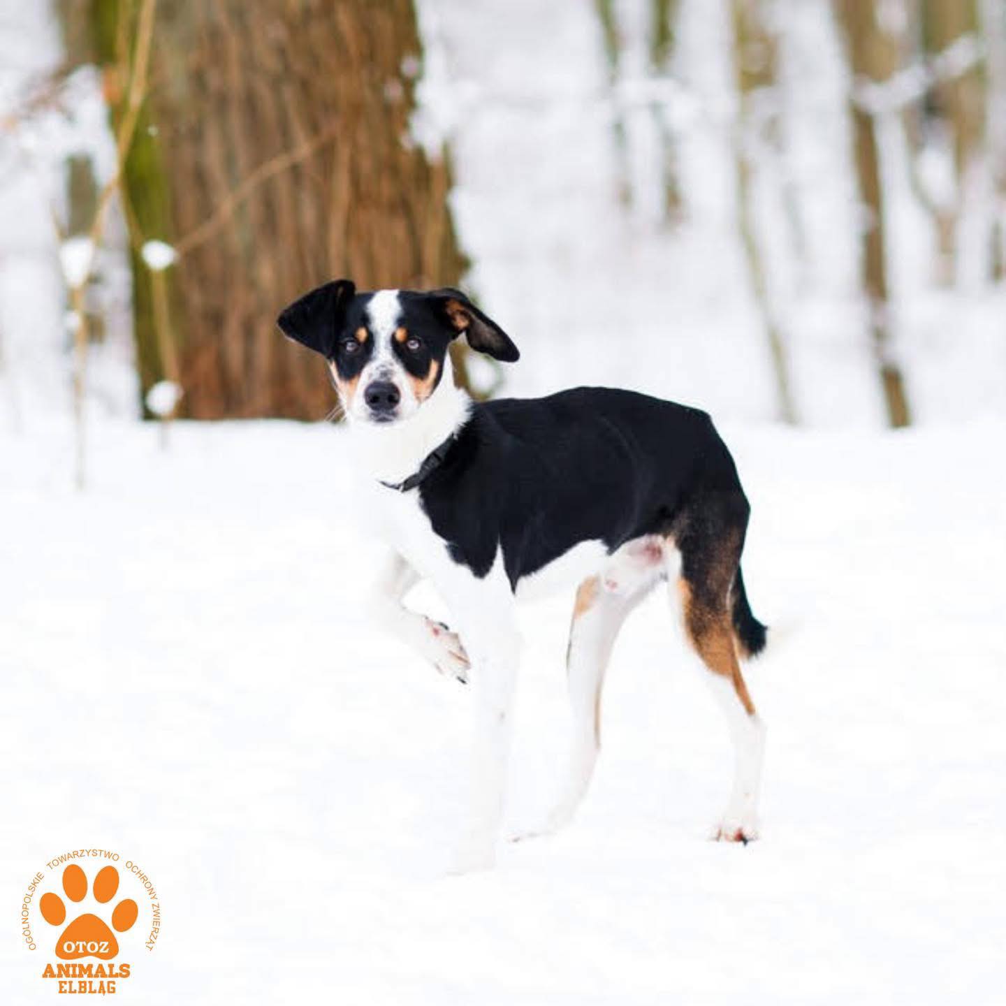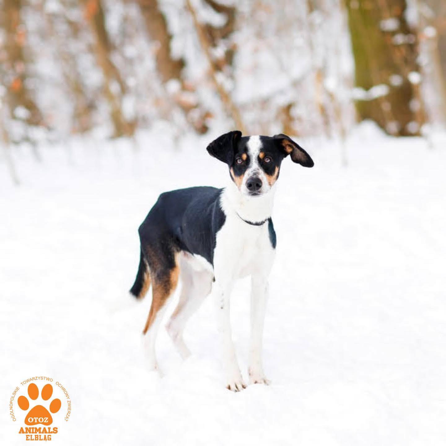 Kokos to ok. 1-roczny psiak, średniej wielkości i szczupłej budowy.