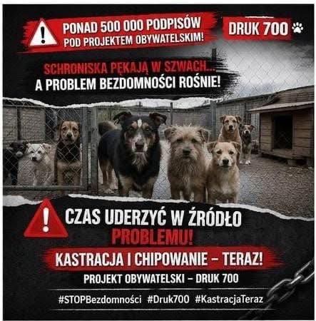 Projekt obywatelski (druk 700) to kompleksowe rozwiązanie problemu bezdomności zwierząt. Zakłada m.in.: