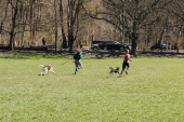 Wolontariusze przemierzyli z czworonogami około 5 kilometrów, prowadząc trasę po malowniczych ścieżkach Bażantarni. Zobacz galerię zdjęć z wydarzenia!